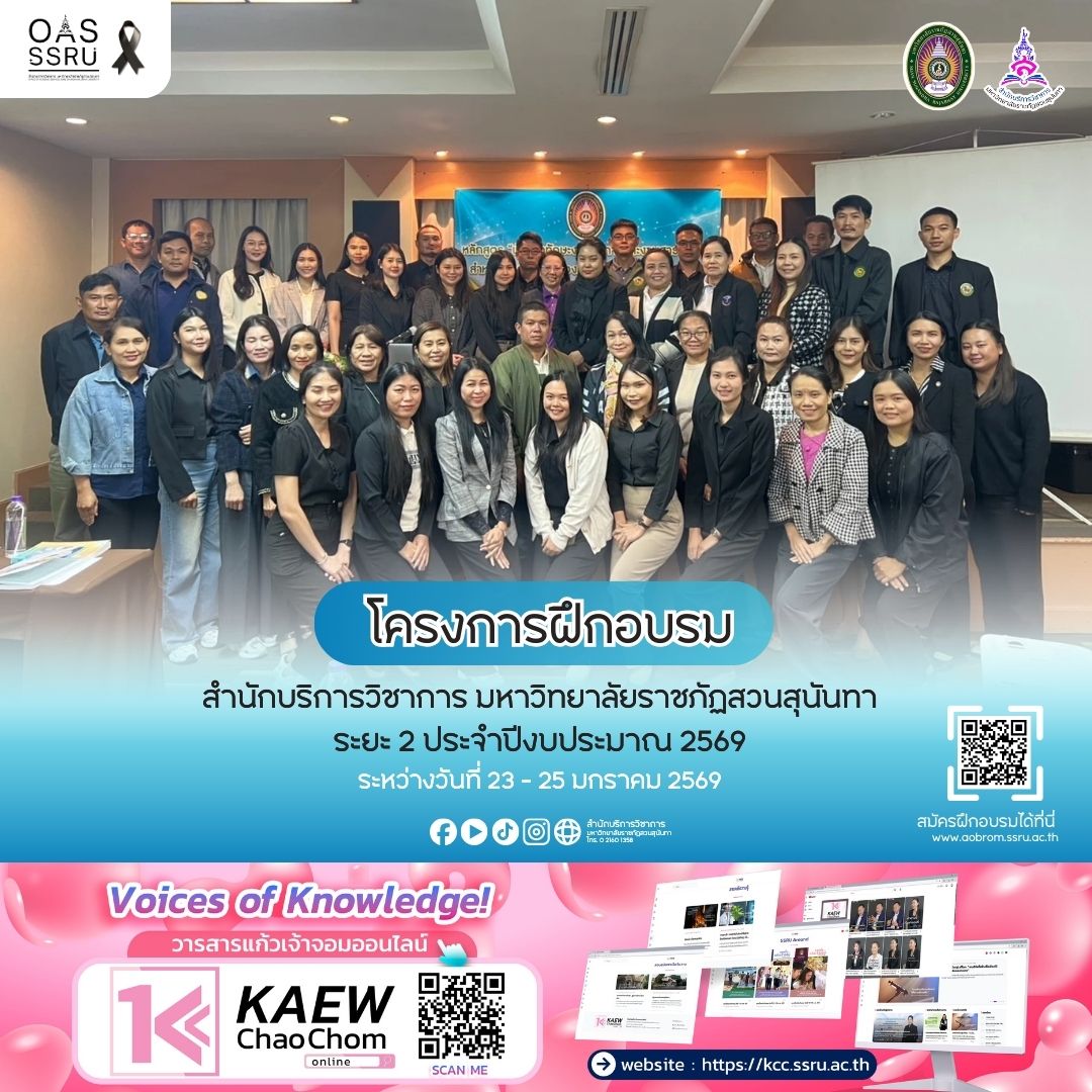 วันที่ 20 มกราคม 2568 เวลา 09.00 – 16.00 น. สำนักบริการวิชาการ นำโดย อาจารย์สุวิตา พฤกษอาภรณ์ รองผู้อำนวยการฝ่ายบริหารและแผนงาน พร้อมด้วยนางสาวสุมินตรา มากเอี่ยม นักวิเคราะห์นโยบายและแผน เข้าร่วมการอบรม “การขับเคลื่อนมหาวิทยาลัยสู่การจัดอันดับ The Impact Ranking – SDGs และ QS World University Rankings” โดยมี รองศาสตราจารย์ ดร.รจนา จันทราสา รองอธิการบดีฝ่ายวิจัยและพัฒนา เป็นประธาน ในโอกาสนี้ได้รับเกียรติจาก คุณธรรมนูญ น่วมอนงค์ รองผู้อำนวยการสำนักงานมหาวิทยาลัย มหาวิทยาลัยเชียงใหม่ เป็นวิทยากรในการอบรม จัดโดย สถาบันวิจัยและพัฒนา มหาวิทยาลัยราชภัฏสวนสุนันทา ณ ห้องประชุมช่อแก้ว อาคาร 31 ชั้น 5