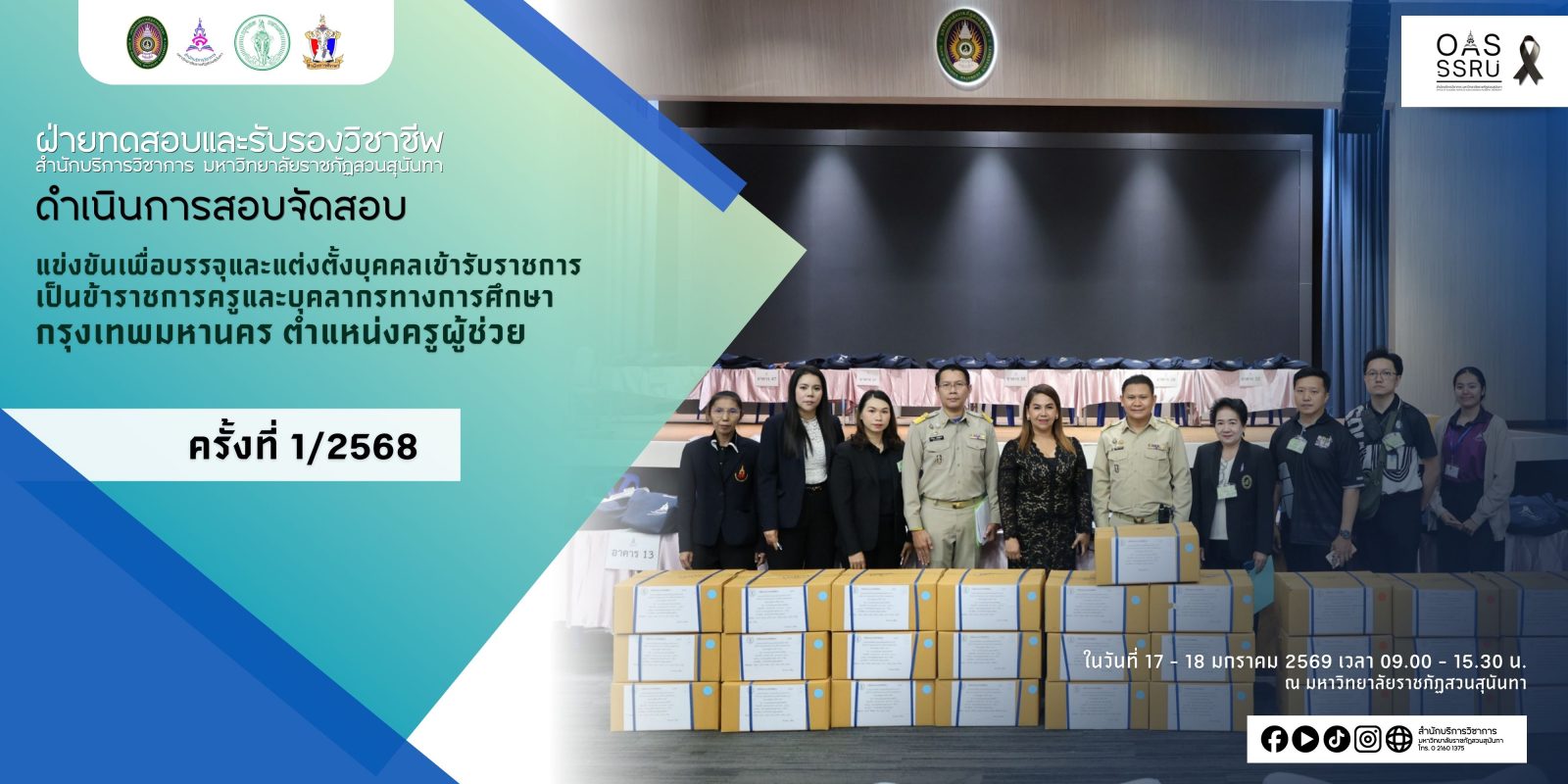ข่าววิชาการ สำนักบริการวิชาการ ดำเนินการจัดการสอบแข่งขันเพื่อบรรจุและแต่งตั้งบุคคลเข้ารับราชการ เป็นข้าราชการครูฯ ตำแหน่งครูผู้ช่วย ครั้งที่ 1/2568 มกราคม 19, 2026