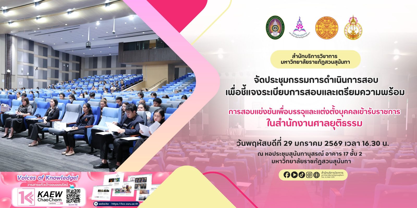 ข่าววิชาการ สำนักบริการวิชาการ จัดประชุมกรรมการดำเนินการสอบแข่งขันเพื่อบรรจุและแต่งตั้งบุคคลเข้ารับราชการ ในสำนักงานศาลยุติธรรม มกราคม 30, 2026