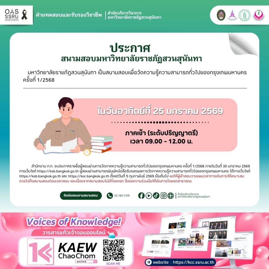 ข่าววิชาการ สำนักบริการวิชาการ ดำเนินการจัดสอบแข่งขันเพื่อบรรจุเป็นพนักงานมหาวิทยาลัย ตำแหน่งเจ้าหน้าที่บริหารงานทั่วไป เมษายน 30, 2024