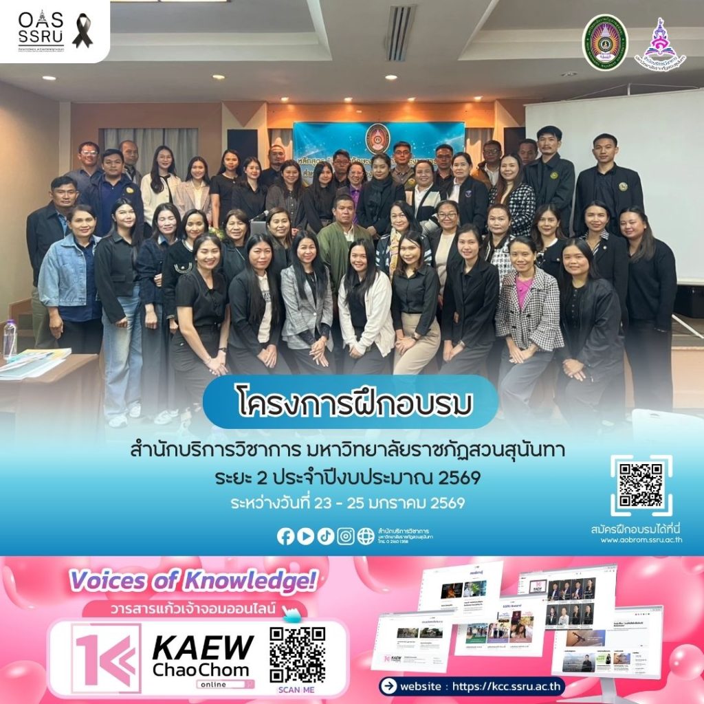 ฝ่ายวิจัยและพัฒนา สำนักบริการวิชาการ จัดโครงการฝึกอบรมระยะ 2 ประจำปีงบประมาณ 2569 จำนวน 3 โรงแรม 5 หลักสูตร (วันที่ 23 – 25 มกราคม 2569)