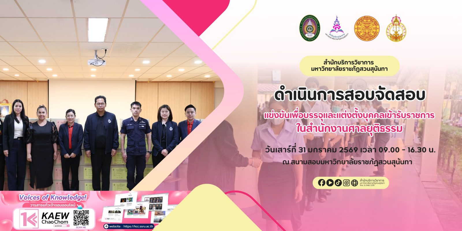 ข่าววิชาการ สำนักบริการวิชาการ ดำเนินการจัดสอบสอบแข่งขันเพื่อบรรจุและแต่งตั้งบุคคลเข้ารับราชการ ในสำนักงานศาลยุติธรรม กุมภาพันธ์ 2, 2026