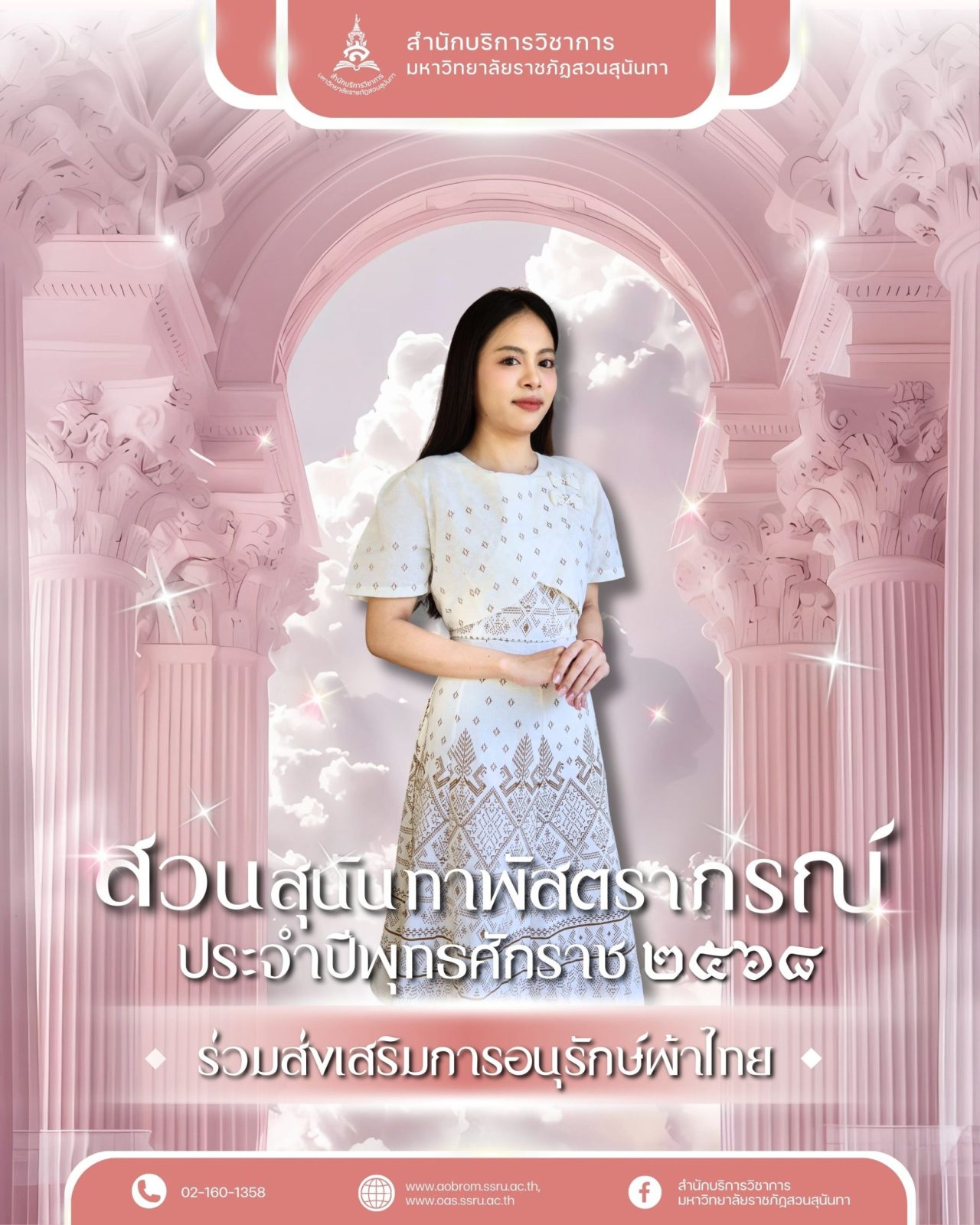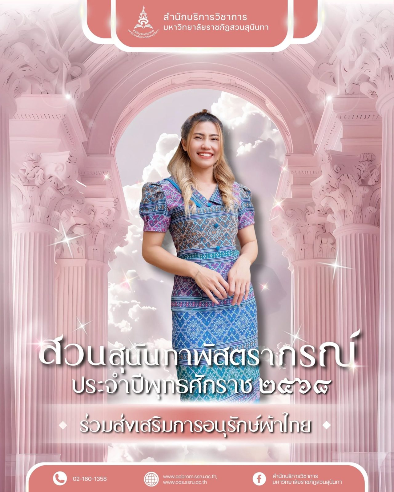 ข่าวกิจกรรม สำนักบริการวิชาการ มหาวิทยาลัยราชภัฏสวนสุนันทา ร่วมส่งเสริมการอนุรักษ์ผ้าไทย ในโครงการ “สวนสุนันทาพัสตราภรณ์ ประจำปี 2568” สิงหาคม 29, 2025
