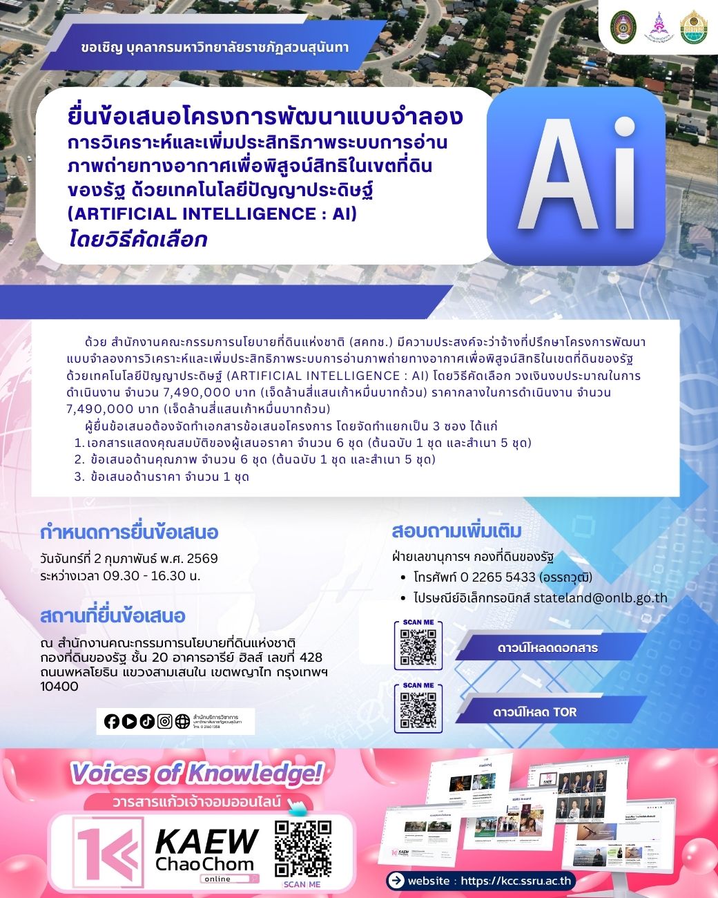 ข่าวกิจกรรม ขอเชิญ บุคลากรมหาวิทยาลัยราชภัฏสวนสุนันทา ยื่นข้อเสนอโครงการฯ ของสำนักงานคณะกรรมการนโยบายที่ดินแห่งชาติ (สคทช.) มกราคม 27, 2026