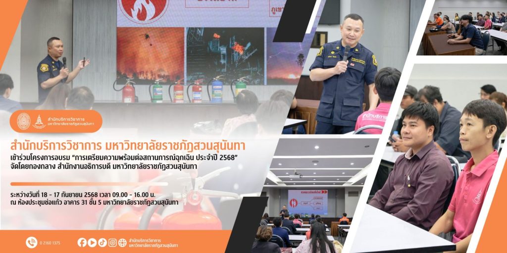ฝ่ายวิจัยและพัฒนา สำนักบริการวิชาการ จัดโครงการฝึกอบรมระยะ 5 ประจำปีงบประมาณ 2568 จำนวน 3 โรงแรม 6 หลักสูตร (วันที่ 29 – 31 สิงหาคม 2568)