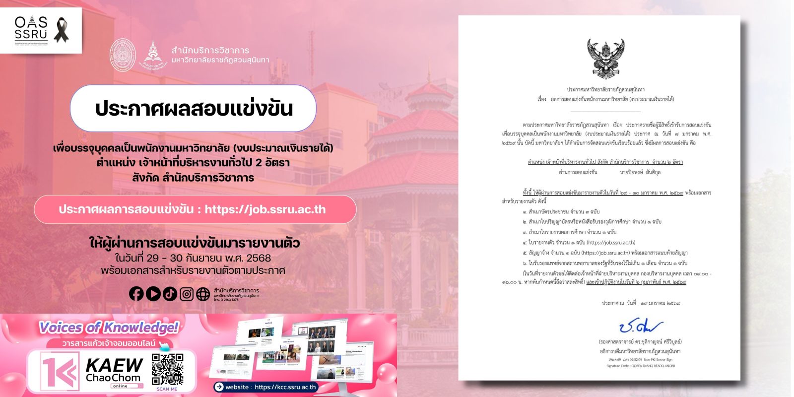 แชร์บทความ : On November 29, 2023, from 1:00 PM to 4:00 PM, the Academic Services Office of Suan Sunandha Rajabhat University, led by Asst. Prof. Dr. Panyada Chantakit, Director of the Academic Services Office, along with the management team and personnel, participated in a training session on “Organizational Profile (OP) Development.” […]