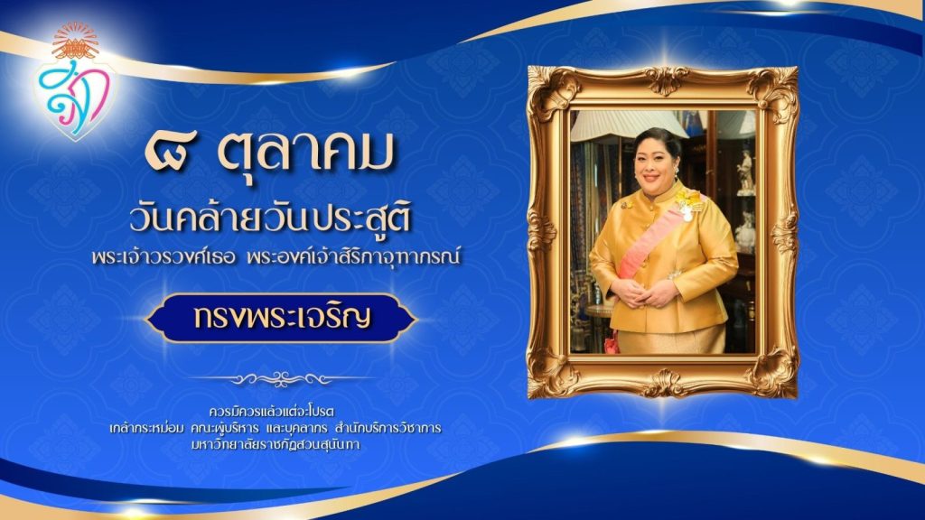 แชร์บทความ : Long Live Her Royal Highness 8 October – Birthday AnniversaryHer Royal Highness Princess Siribha Chudabhorn May Her Royal Highness be blessed with good health, happiness,and remain a guiding inspiration to the Thai people. With our deepest respect,Executives and StaffAcademic Services BureauSuan Sunandha Rajabhat University Related Articles :