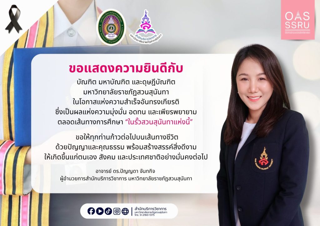 The Director of the Academic Services Office extends heartfelt congratulations to the graduates, master’s degree recipients, and doctoral degree recipients of Suan Sunandha Rajabhat University.