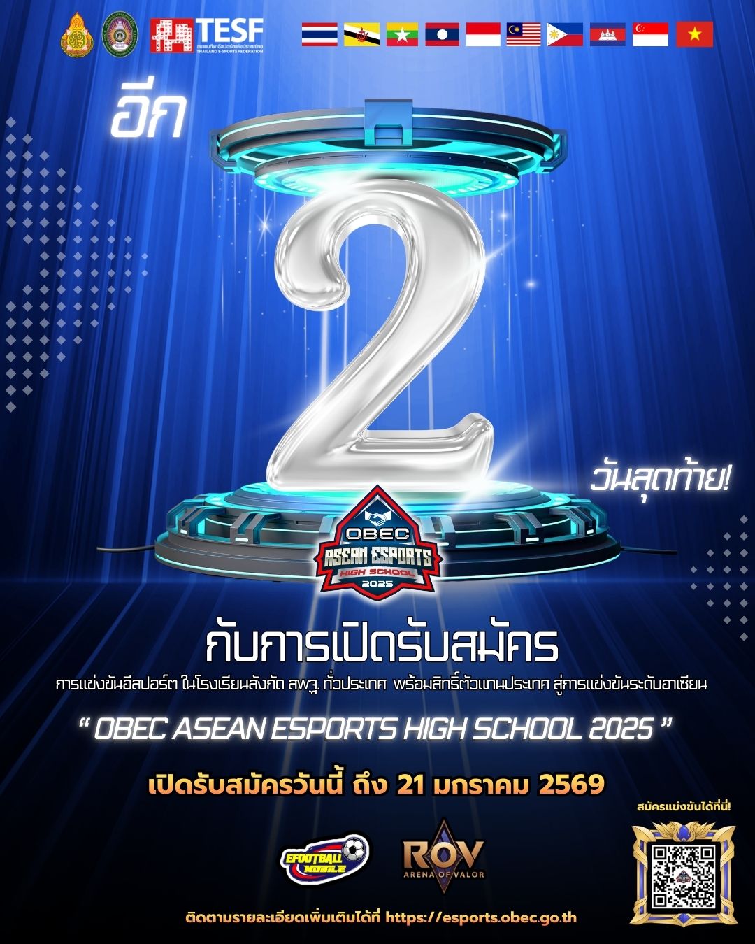 News & Events Only 2 days left until the “OBEC ASEAN ESPORTS HIGH SCHOOL 2025” competition! January 20, 2026