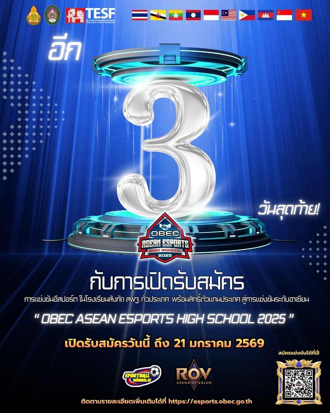 News & Events Only 3 days left until the “OBEC ASEAN ESPORTS HIGH SCHOOL 2025” competition! January 19, 2026