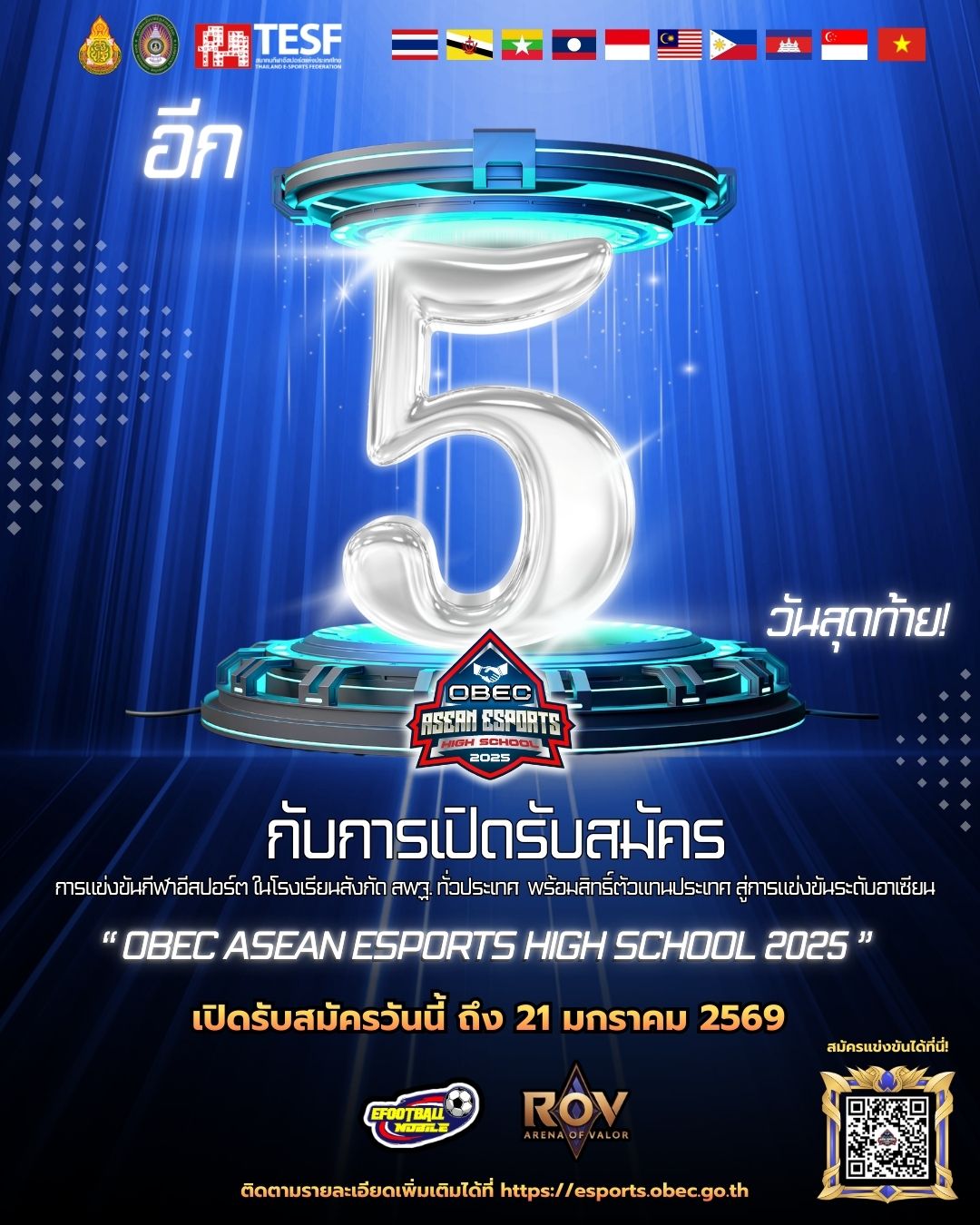 News & Events Only 5 days left until the “OBEC ASEAN ESPORTS HIGH SCHOOL 2025” competition! January 17, 2026
